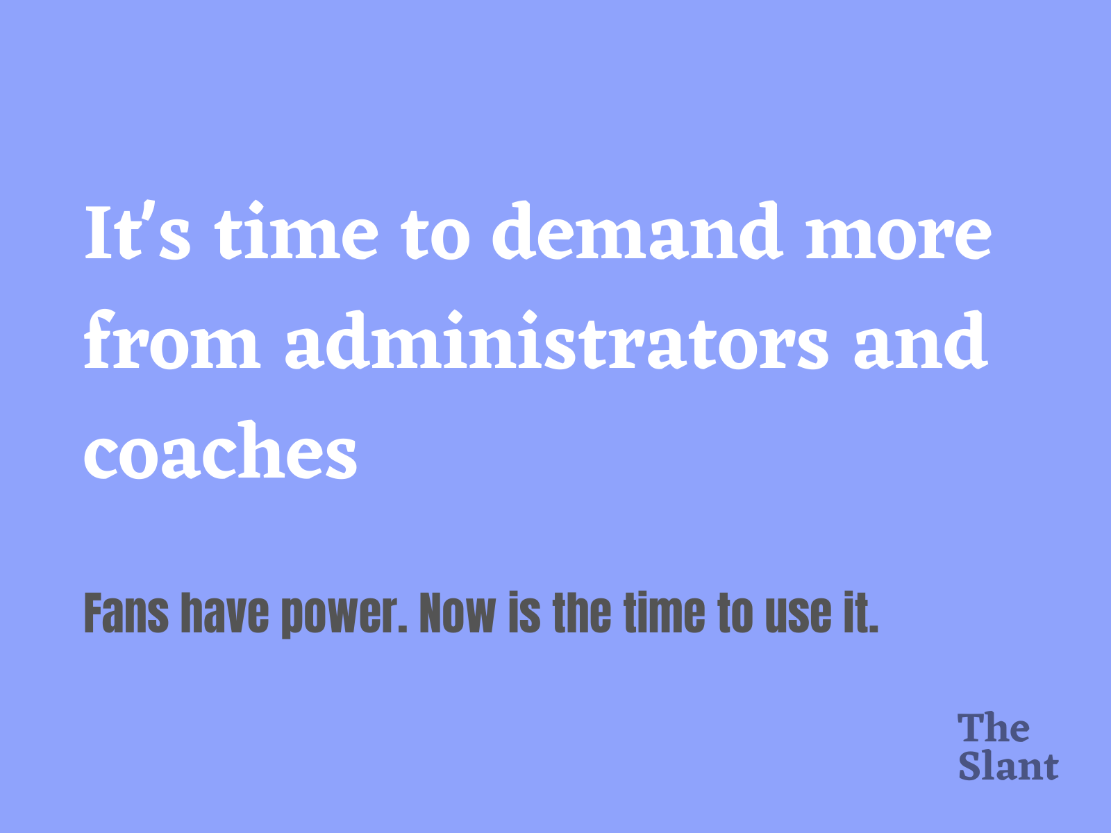 Fans have power. They buy tickets. They subscribe to the cable provider that allows them to watch their team on TV. A smaller number of them may donate enough money to pay your head coach’s salary.