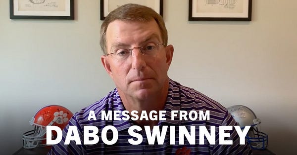 Head coach Dabo Swinney then released a 14-minute video response, which is probably best digested by this Bomani Jones thread: